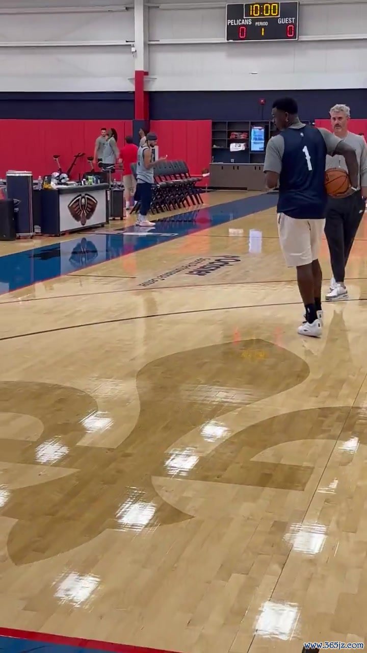 害搁那聊啥呢!练习 后普尔与锡安继续讨论 两人拿球连说带比划