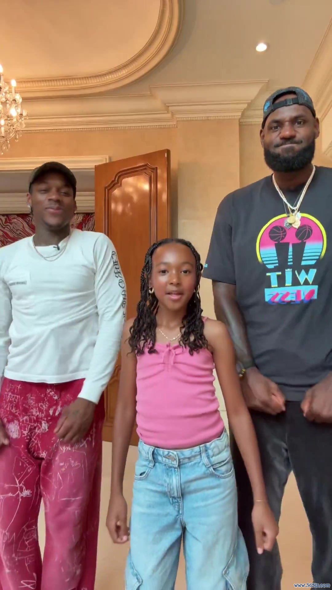 10月1日讯 今日美国网红、湖人死忠球迷Tylil James更新IG动态, 意甲英超直播晒出自己与詹姆斯及后者的女儿朱莉跳舞的视频。