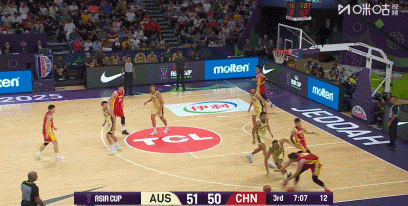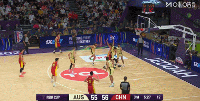 我数了一下,在做出这个替换队员 之后,中国队在短短的3分55秒内被澳大利亚冲了6个前场篮板球 。