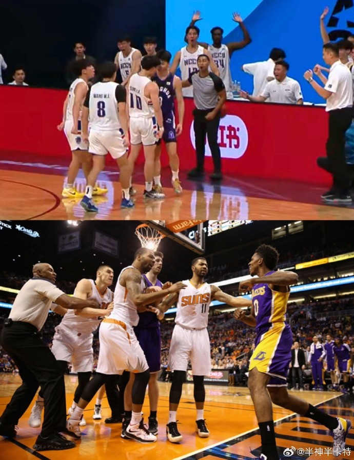 媒体人半神半卡特发文表示:“石奎关键三分被封盖后, 意甲政治大学球员上前挑衅的画面,让我想起尼克-杨在NBA的名场面,连双方运动活动 服 配色都惊人的相似。”