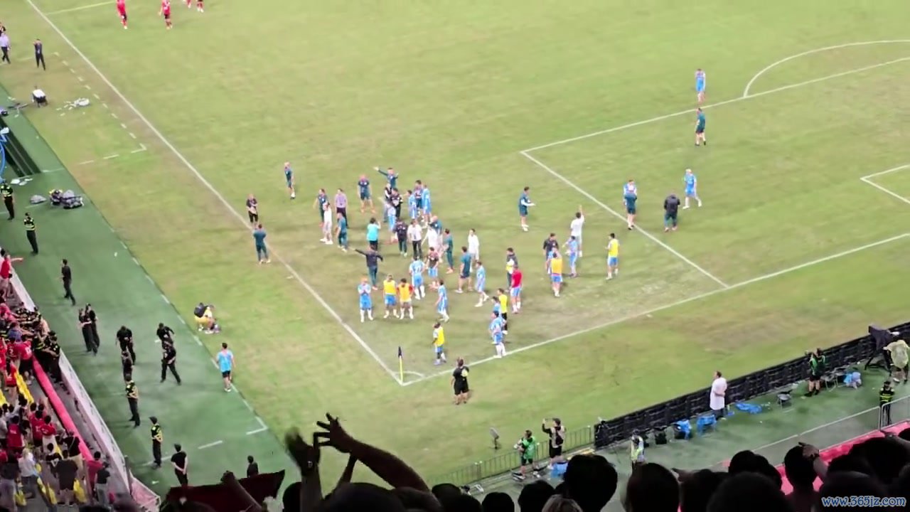 2025年8月19日22时许,足协杯准总决赛 散场期间,个别观赛人群 发生冲突。我局现场执勤警力与安保人员立即上前制止,并快速 将涉案人员带离现场。