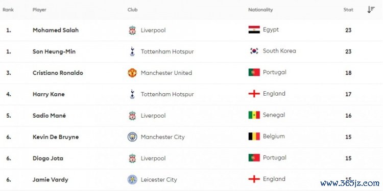 2021-2022赛季, 意甲孙兴慜最终以23粒英超得分 ,搏击资讯与萨拉赫共享英超金靴。↓