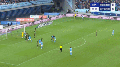 第20分钟,深圳队前场连续的起球攻势,韦斯利危险区域 中路的抢点顶球攻门没能顶正↓