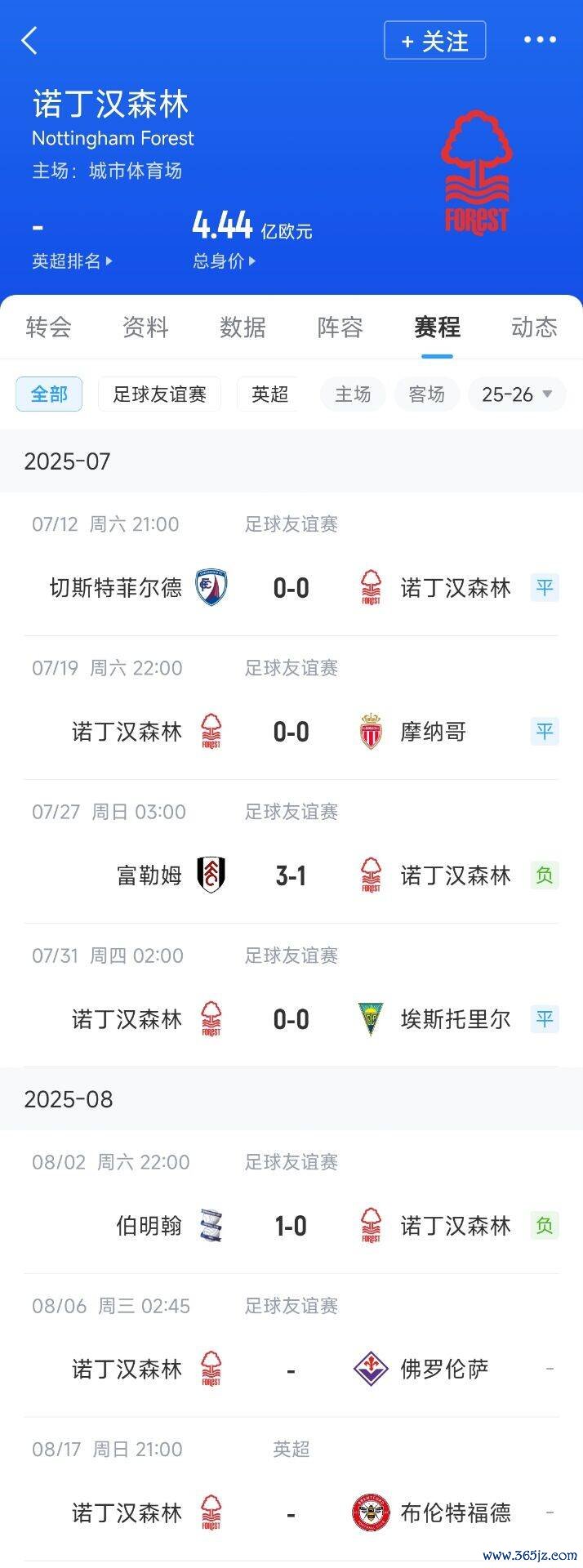 08月03日讯 英超的诺丁汉森林季前赛5场1场也没赢,3平2负只进了1个球。