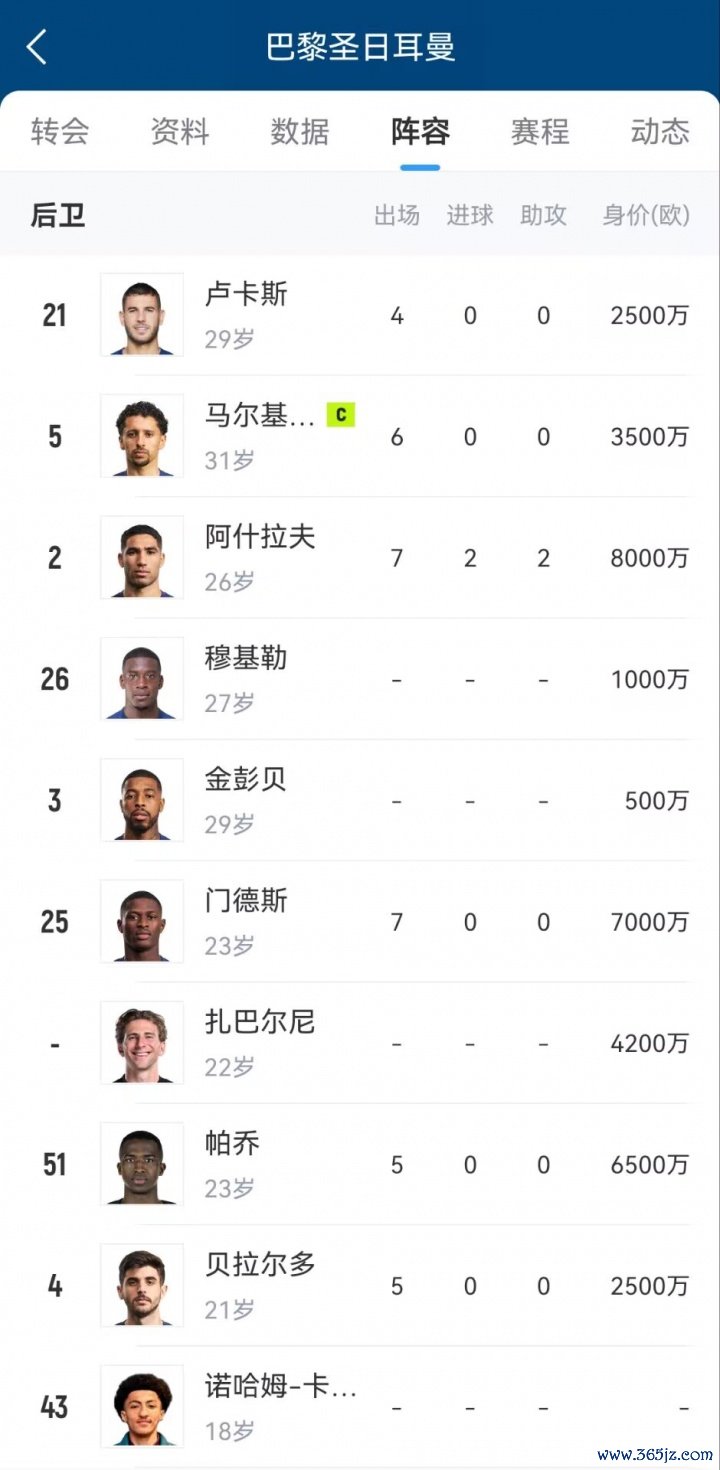 这深度全欧第几?签扎巴尔尼后,巴黎队内6中卫身价总和接近2亿欧