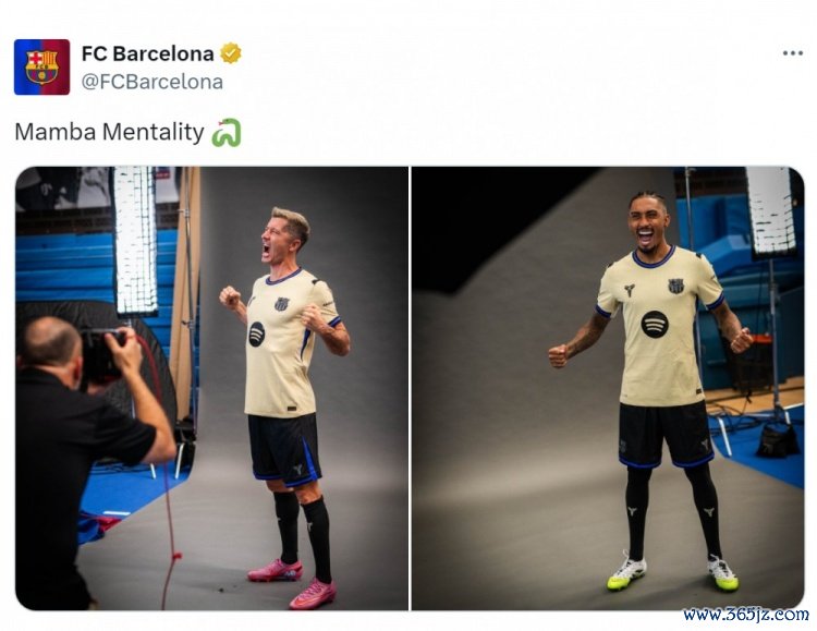 巴萨官方社媒晒出莱万、拉菲尼亚身穿科比联名运动活动 服 定妆照片, 游泳快讯体育直播配文:“曼巴精神。”