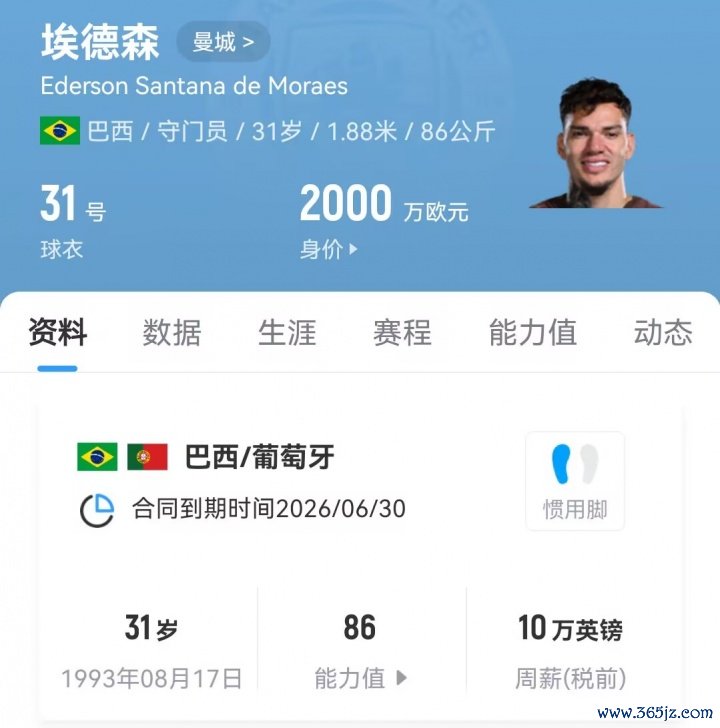 31岁的埃德森已经为曼城效力了8个赛季,搏击资讯他的合同将在明年到期。球员目前的德回转 价为2000万欧元。