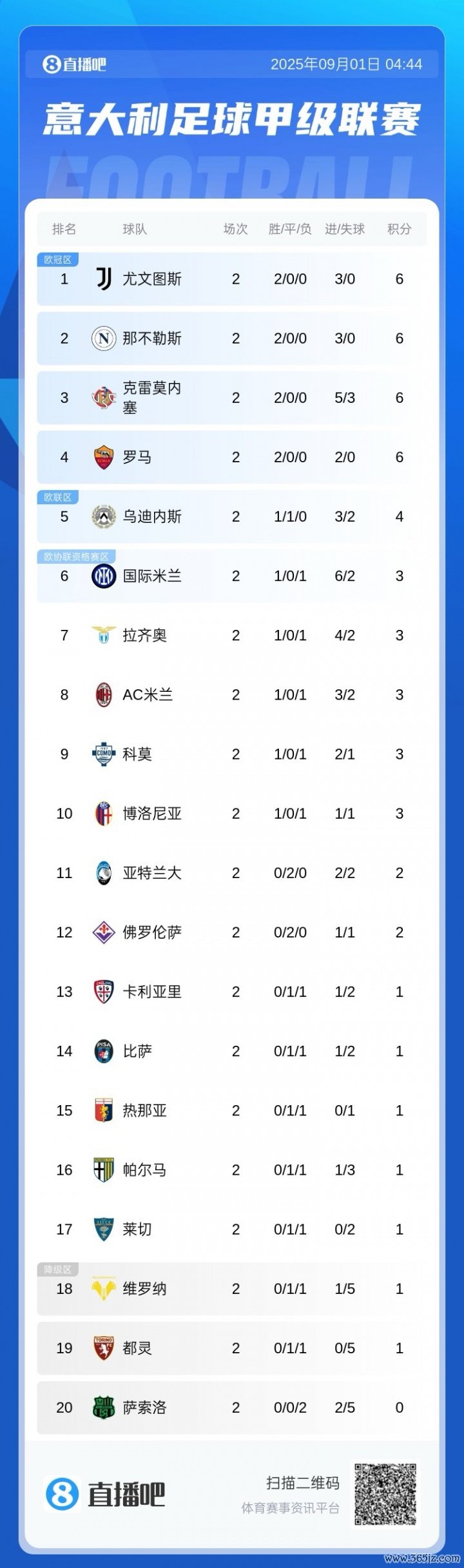 09月01日讯 本轮意甲,较晚结束的国米1-2不敌乌迪内斯,积分榜上, 意甲英超直播国米和米兰都是3分。