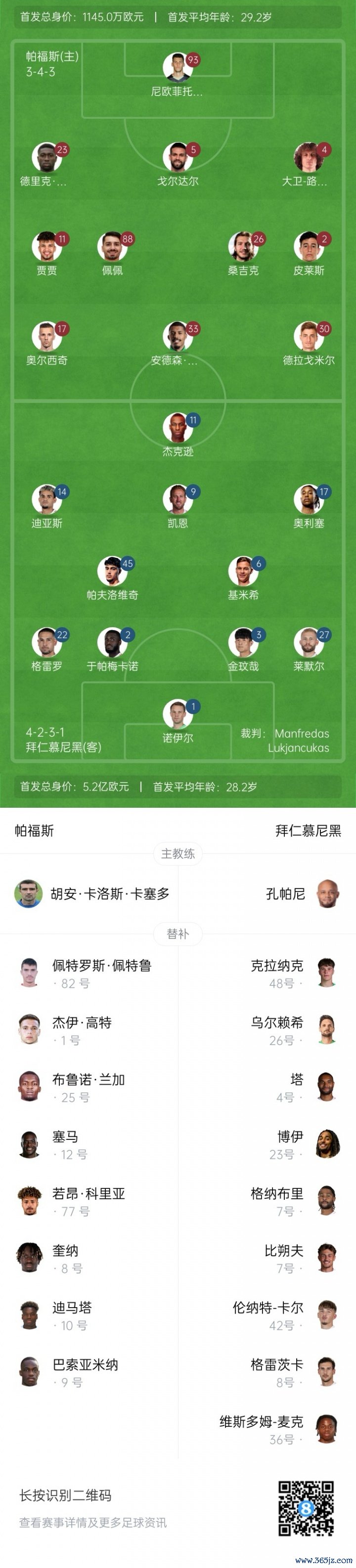 拜仁首轮3-1战胜切尔西, 意甲帕福斯则0-0战平奥林匹亚科斯。本场是两队首次交手。