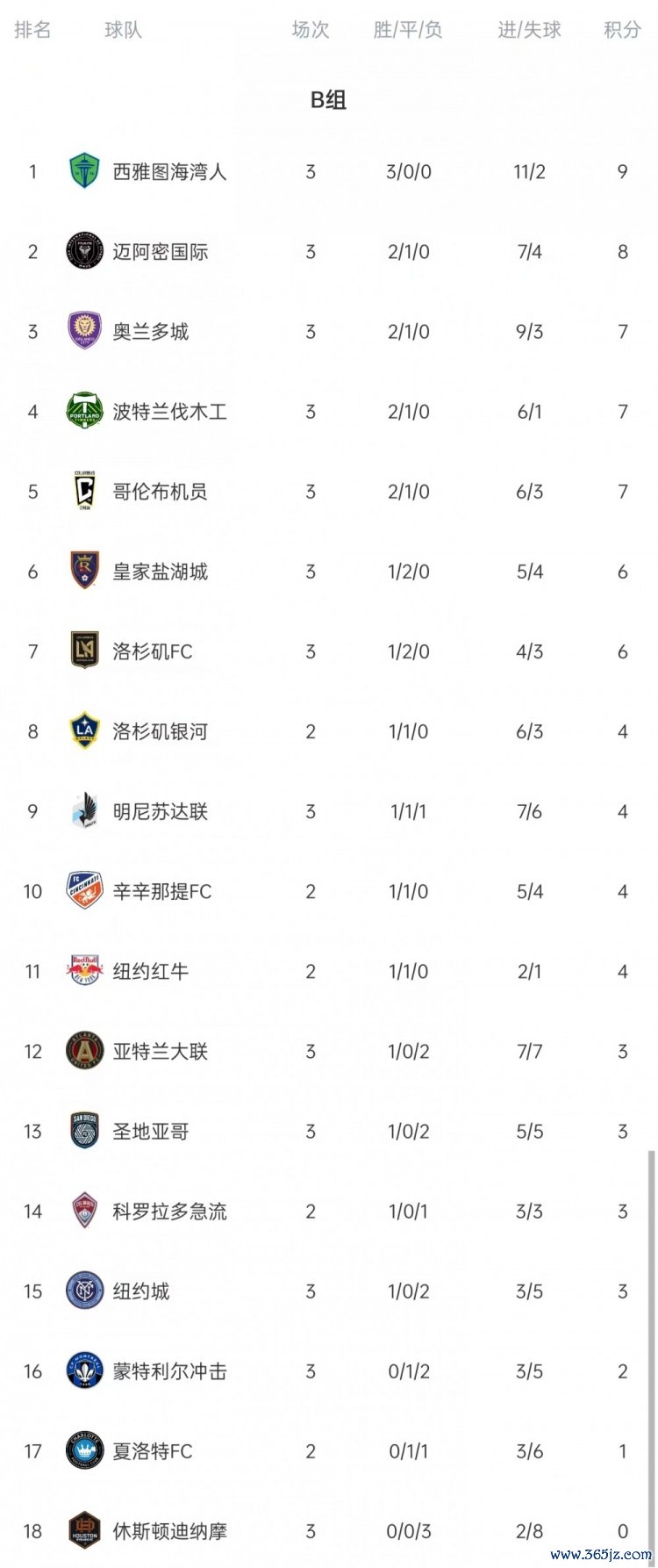 8月7日讯 联盟杯小组赛第三轮多场赛事 战罢,迈阿密国际积8分锁定B组第二位, 意甲西雅图海湾人积9分居首。