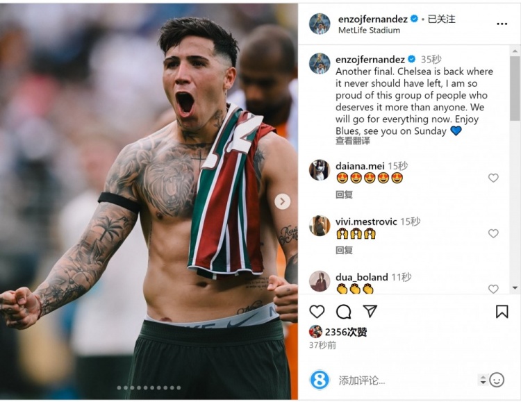 恩佐社媒写道:“又一场总决赛 , 游泳快讯体育直播切尔西回到了它本不应该离开的位置, 意甲我为队友们感到非常骄傲,他们比任何人都更配得上这一切。”