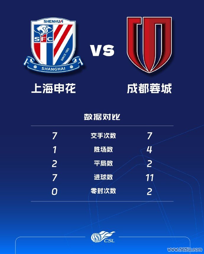 期间中超联赛,搏击资讯申花攻入7球,没有完成过零封;蓉城攻入11球,完成过2次零封。