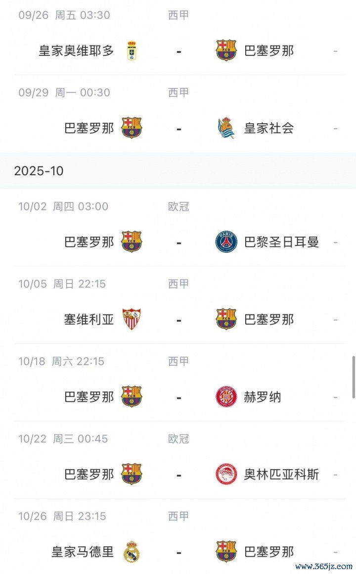 巴萨赛程↓