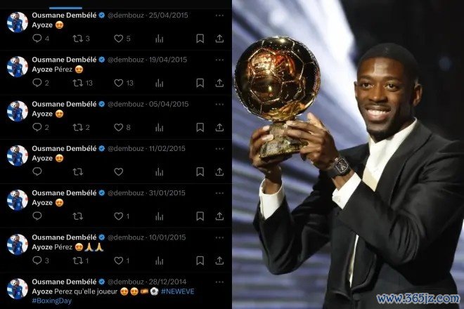 9月23日讯 马卡报消息,新科金球奖得主登贝莱曾是阿约泽-佩雷斯的粉丝。