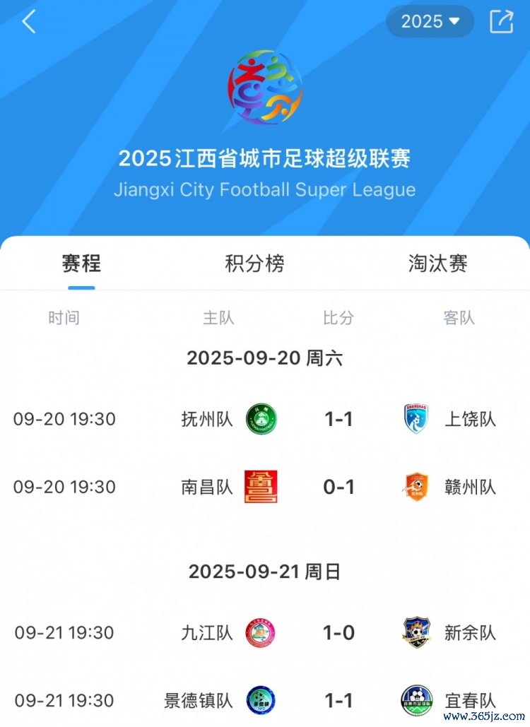 9月21日讯 2025赣超职业联赛 1/4总决赛 首局 全部赛事 于今晚落下帷幕,其中小组赛位列北区第一的九江队主场作战 1-0击败新余队,取得晋级下一轮 先机;南区第一宜春队客场应战 1-1战平景德镇队。
