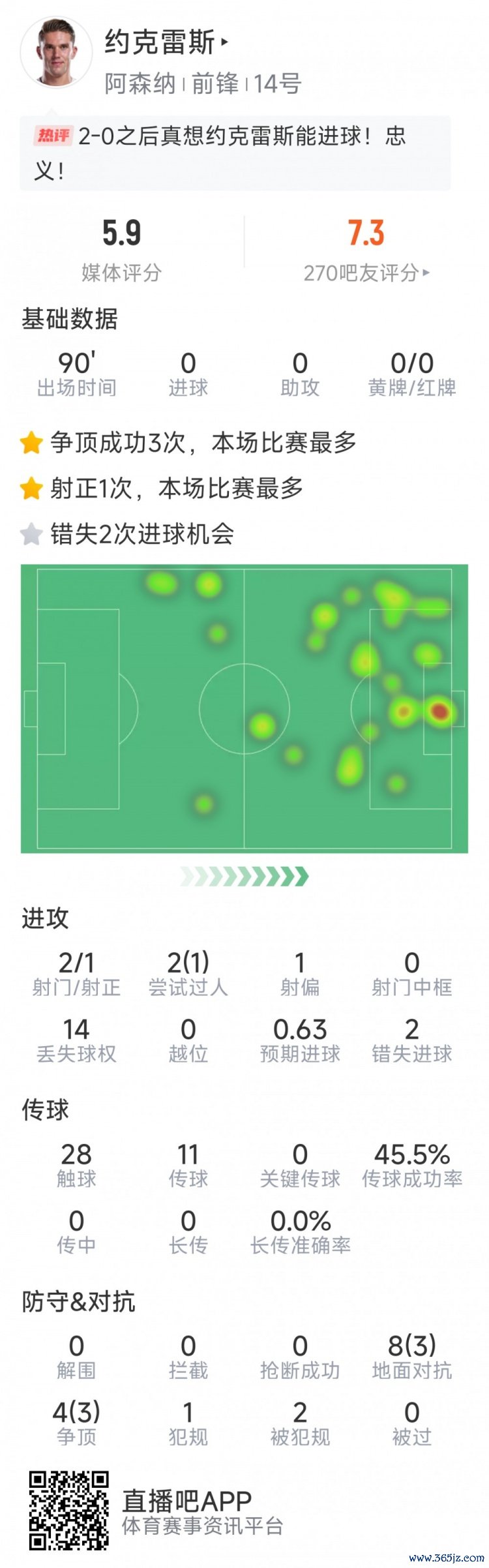 10月5日讯 在本轮英超,搏击资讯NBA直播阿森纳2-0击败西汉姆。以下为约克雷斯本场数据: