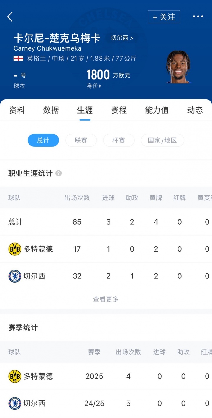 楚克乌梅卡现年21岁,搏击资讯英格兰中场球员,切尔西在2022年花费1800万欧元将其从维拉签下。上赛季冬窗他被租借至多特蒙德,球员代表多特出场17次,贡献1球。目前楚克乌梅卡德回转 价为1800万欧。