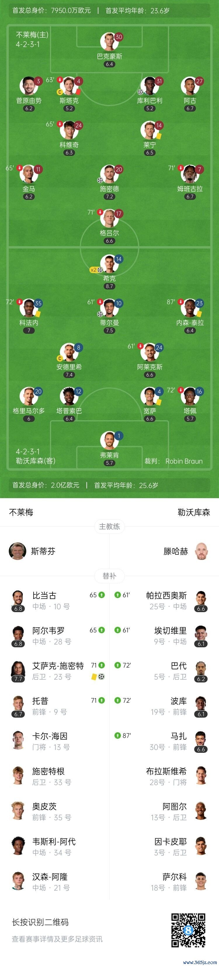 滕哈赫2轮不胜! 勒沃库森遭绝平3-3十人不莱梅 库利巴利94分钟绝平